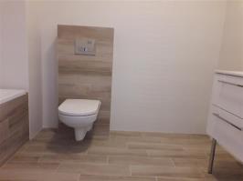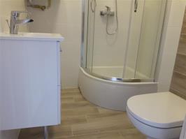 Na podłogach gres, ściany cekolowane i pomalowane na biało.
